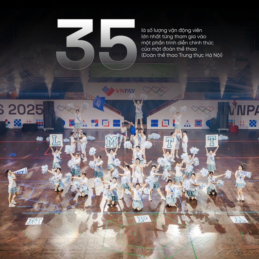 Đoàn Thể thao Trung Thực Hà Nội thiết lập kỷ lục mới với 35 thành viên tham gia vào phần trình diễn chính thức, trở thành tiết mục có số lượng thành viên lớn nhất từng xuất hiện tại VNPAY GAMES.