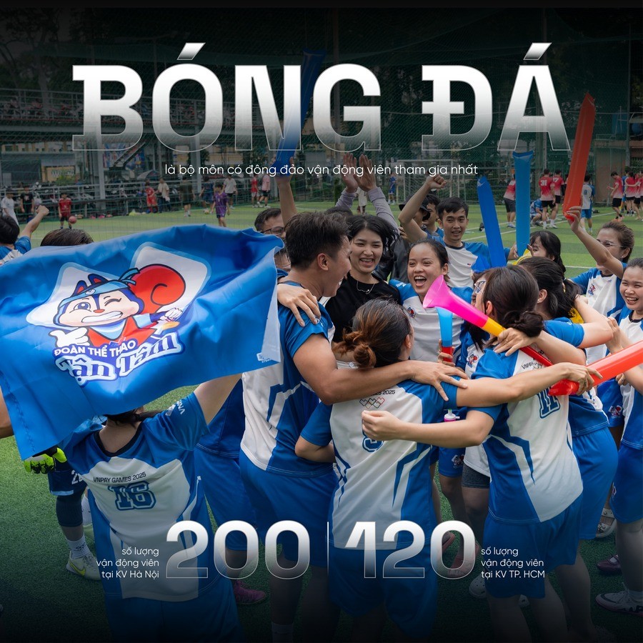 Bóng đá là bộ môn thu hút đông đảo vận động viên nhất, với 200 vận động viên tại khu vực Hà Nội và 120 vận động viên tại khu vực TP. Hồ Chí Minh.