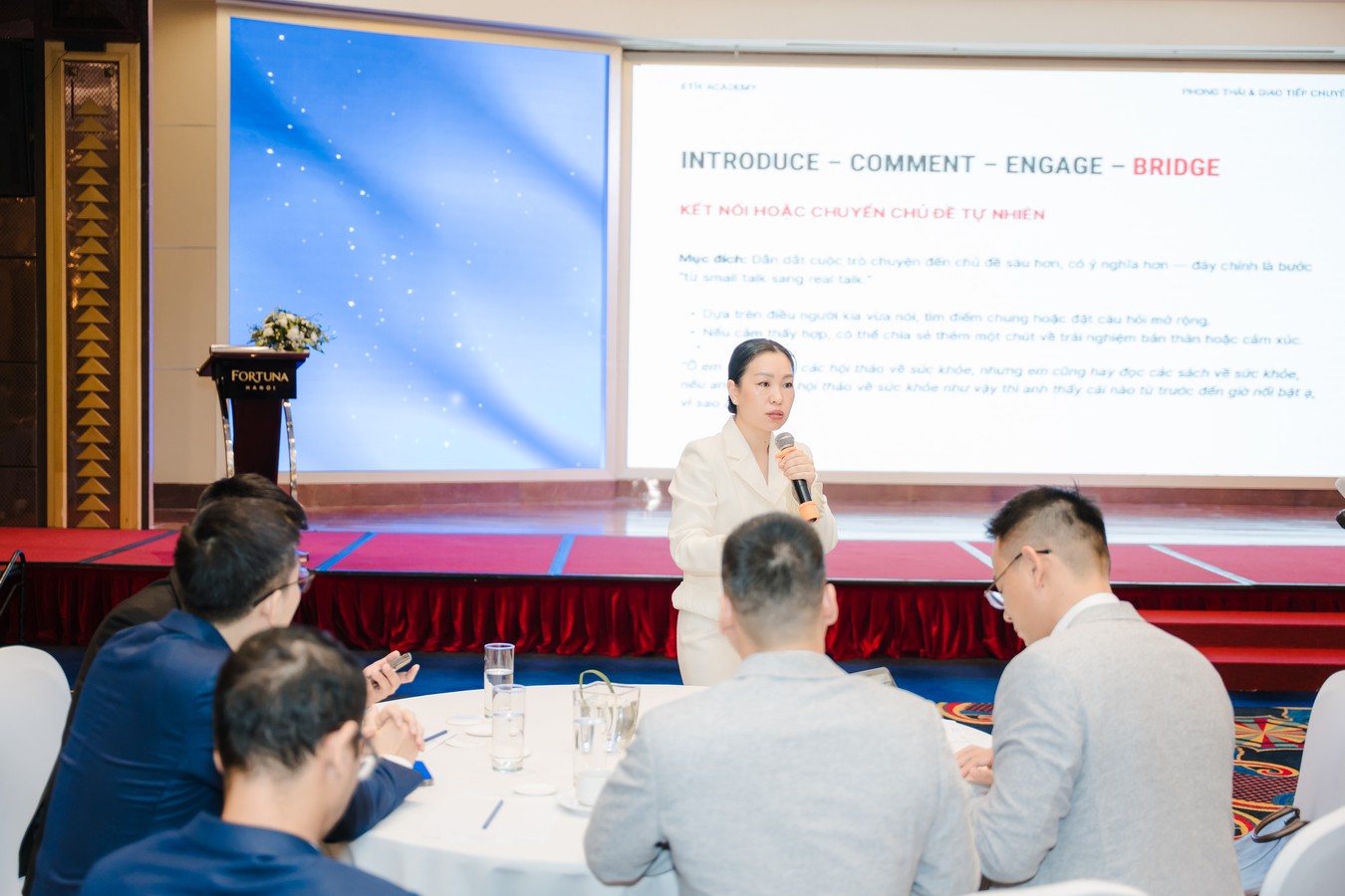 Diễn giả Trần Yên Ly – Chuyên gia Nghi thức quốc tế & giao tiếp liên văn hóa – chia sẻ tại workshop ‘The Gentleman Leader’.